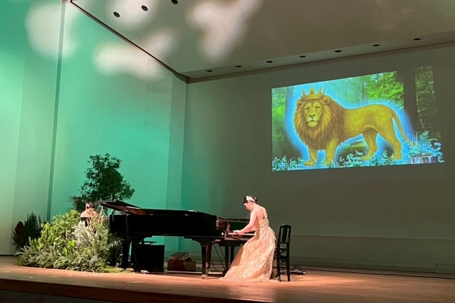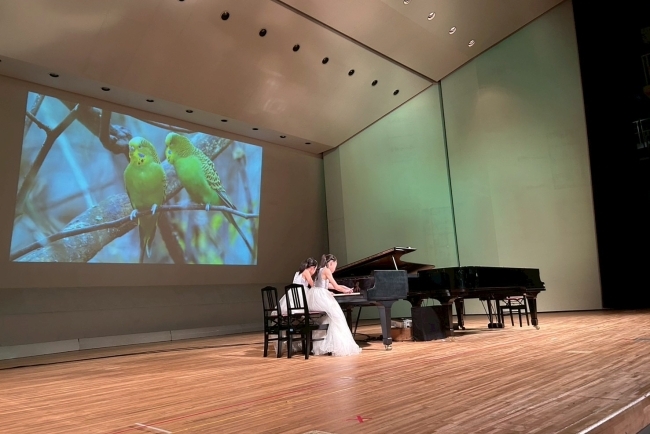 第2部はサン=サーンス作曲の』動物の謝肉祭』を映像と谷川俊太郎さんの詩の朗読と共に2台のピアノを使ってお届けしました。