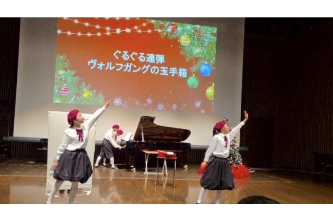 『ぐるぐる連弾』はモーツァルト曲を使い自作のダンスや歌で会場中が大笑い!皆を楽しませてくれました。